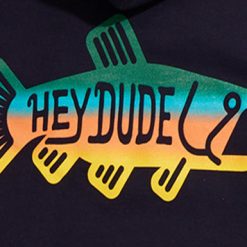 Be a total catch in this navy hoodie with a colorful trout back. Comfy as our shoes featuring a Jersey-lined hood and cotton-poly blended fleece material.