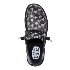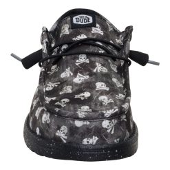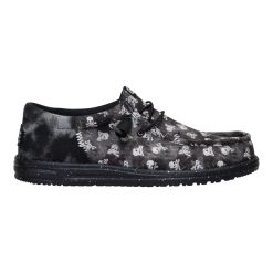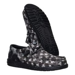 Don’t let the skull and crossbones fool you. These Wally Funk shoes put the jolly in the Jolly Roger. Made with printed textile and a herringbone heel piece. these shoes have ye land lubbers smiling thanks to the easy step-in design and elastic laces ye don’t have to tie. Arrgh! What a comfortable shoe this be.