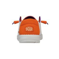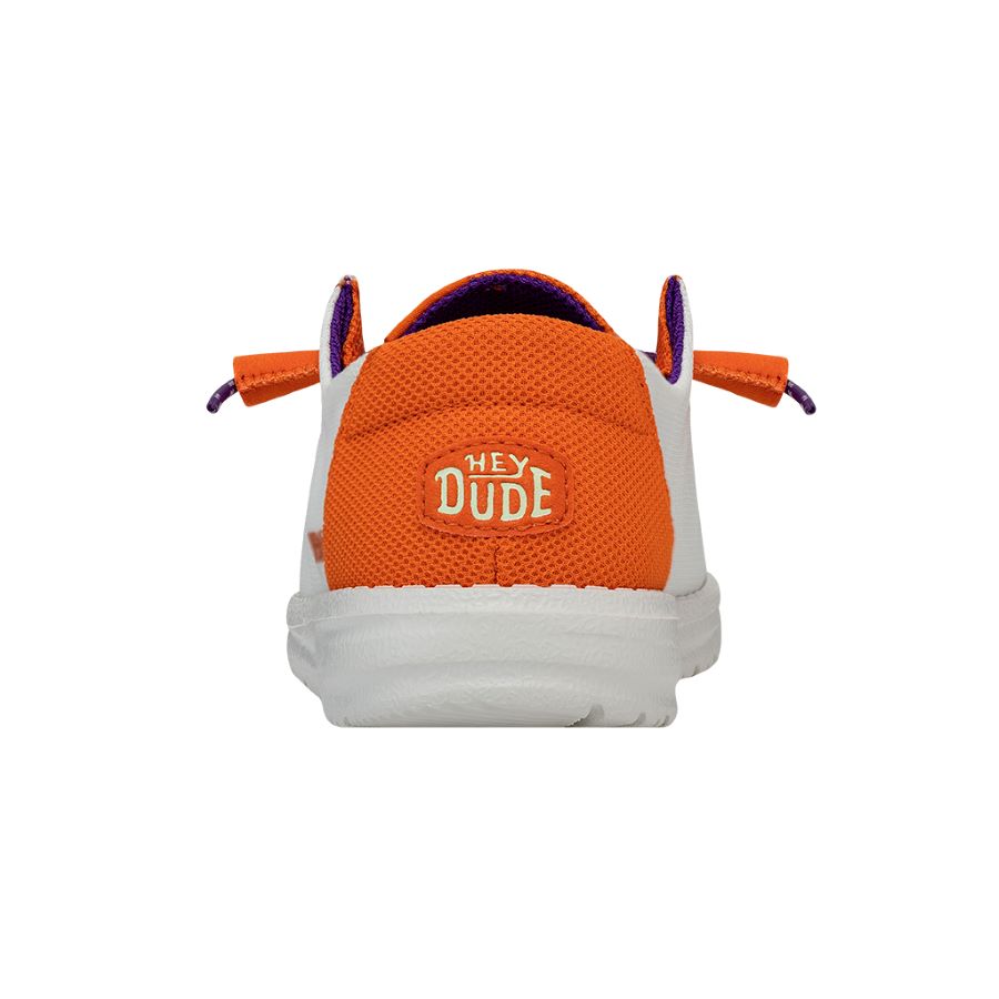 TheWomen’sWendy now screams school spirit! Show your support for the Clemson Tigers in style with a unique design featuring the bold team colors. Made with signature HEYDUDE comfort. lightweight materials. and a slip-on design. these are perfect for all-day wear to bring you and your crew from the tailgate to the game.