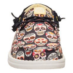 Bold. beautiful. and bursting with spirit. the Wendy Day of the Dead shoe is here to turn every step into a fiesta! Lightweight. ultra-comfy. and easy to slip on. it’s perfect for dancing through Dia de los Muertos festivities??or just bringing a little extra soul to your everyday style. Decked out with vibrant colors and playful calavera (sugar skull) designs. these casual classics pays tribute to tradition with a fun. fashion-forward twist. Whether you’re honoring the past or celebrating the now. this shoe’s got you covered in color and comfort.