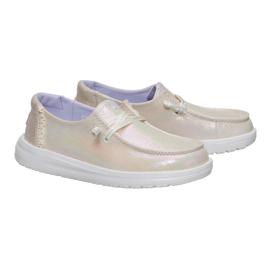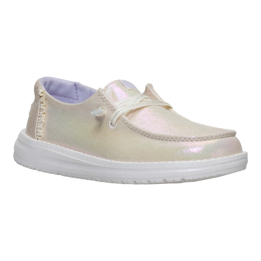 Add some dazzle to the day in these twinkling Wendy shoes for big kids. They sparkle with a shimmery Textile upper that’s accented with some fun ruffly detail. The easy-on design includes a wide collar that kids can step right into and elastic laces that don’t need to be tied. They’re light. bendy and comfy for all-day adventures